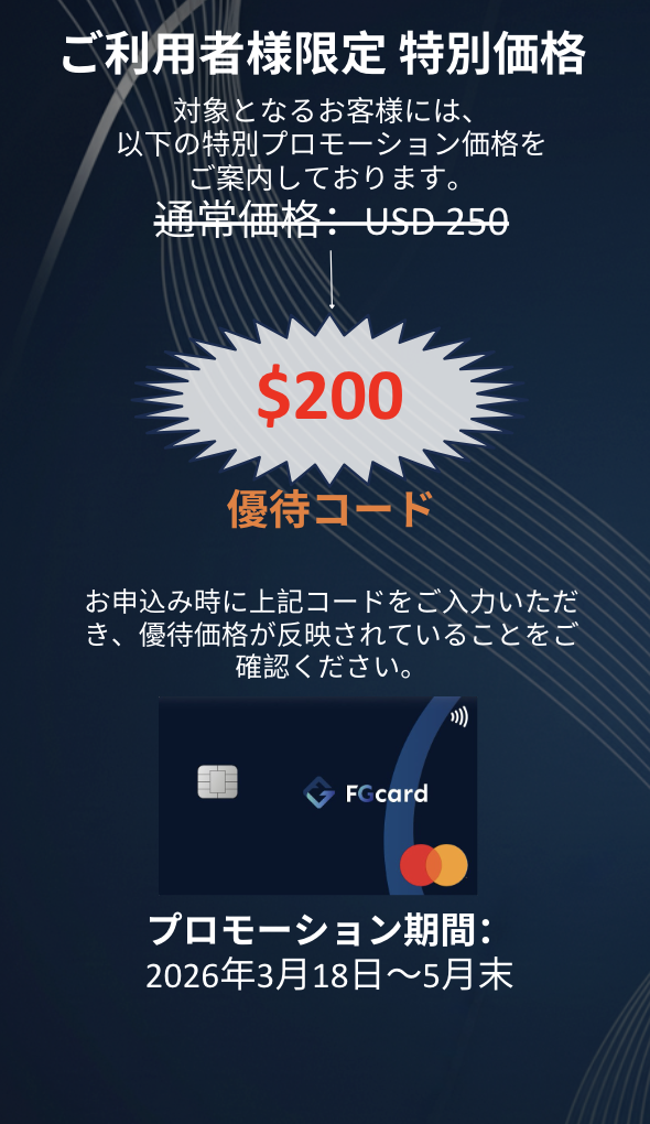 FG Master デビットカードは、暗号資産 USDT を法定通貨 USD に変換し、日常の決済をサポートするデビットカードです。